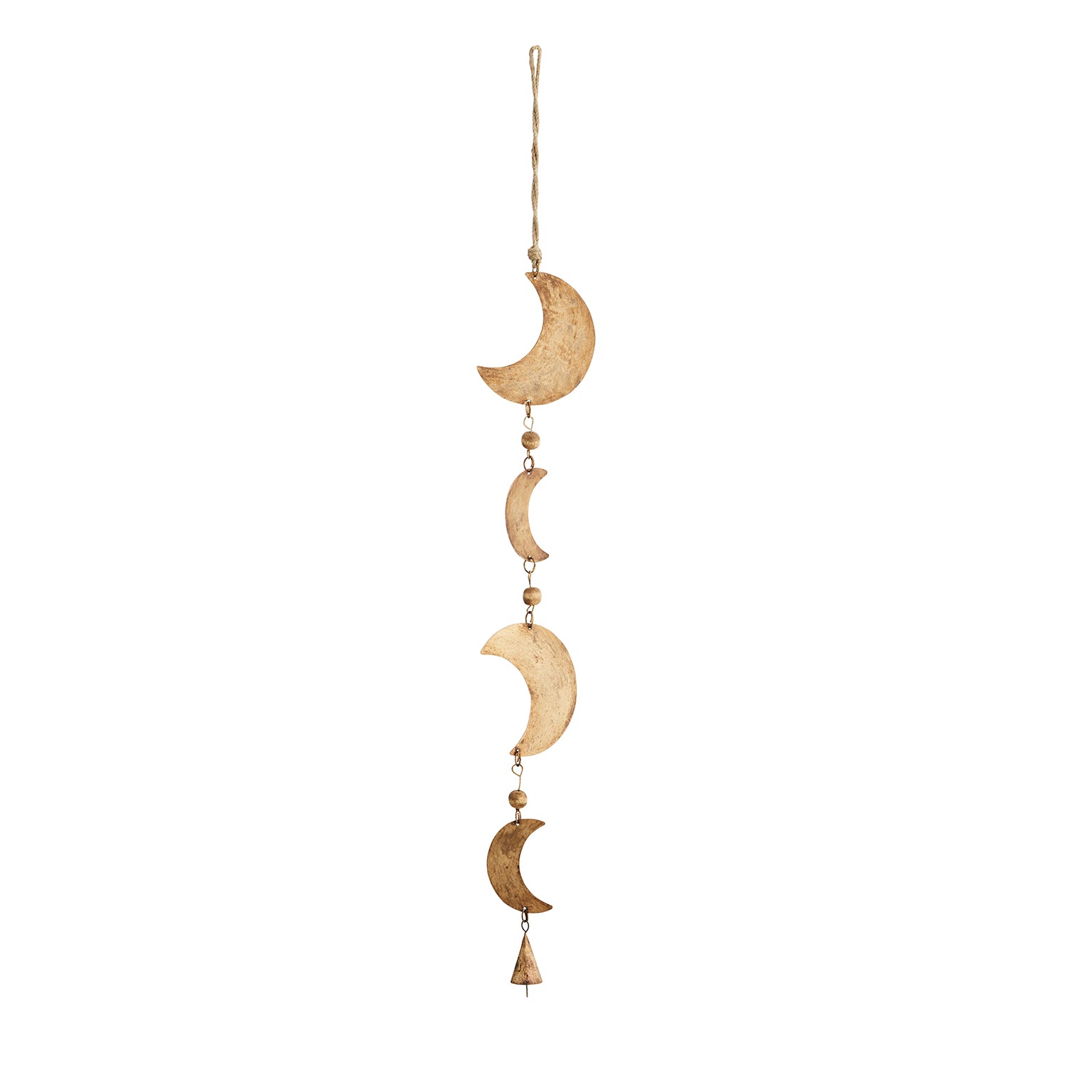 This beautiful hanging decoration is crafted from recycled iron. The decoration consists of gold crescent moon cut outs and beads, with a small bell at the bottom.