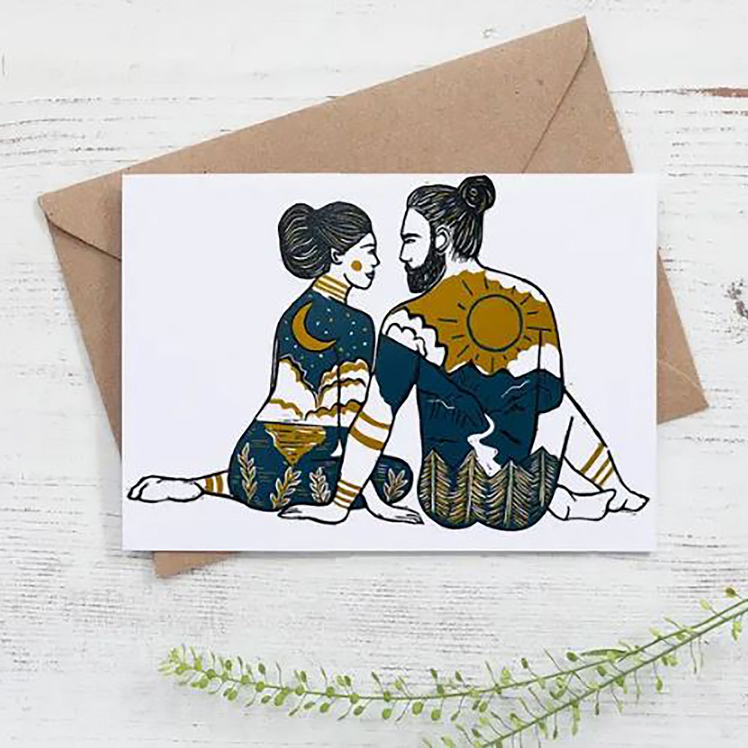 Blank inside with a brown Kraft envelope, made from recycled card stock. Digitally printed, taken from original linocut designs.