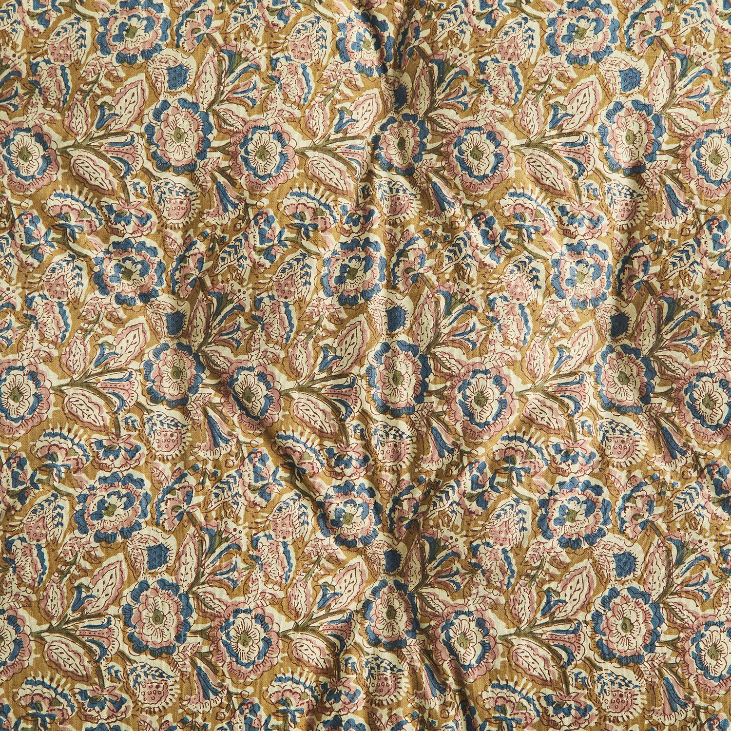 Honey, Rose, & Blue Floral Block Print Cotton Mattress, 60 x 100 cm