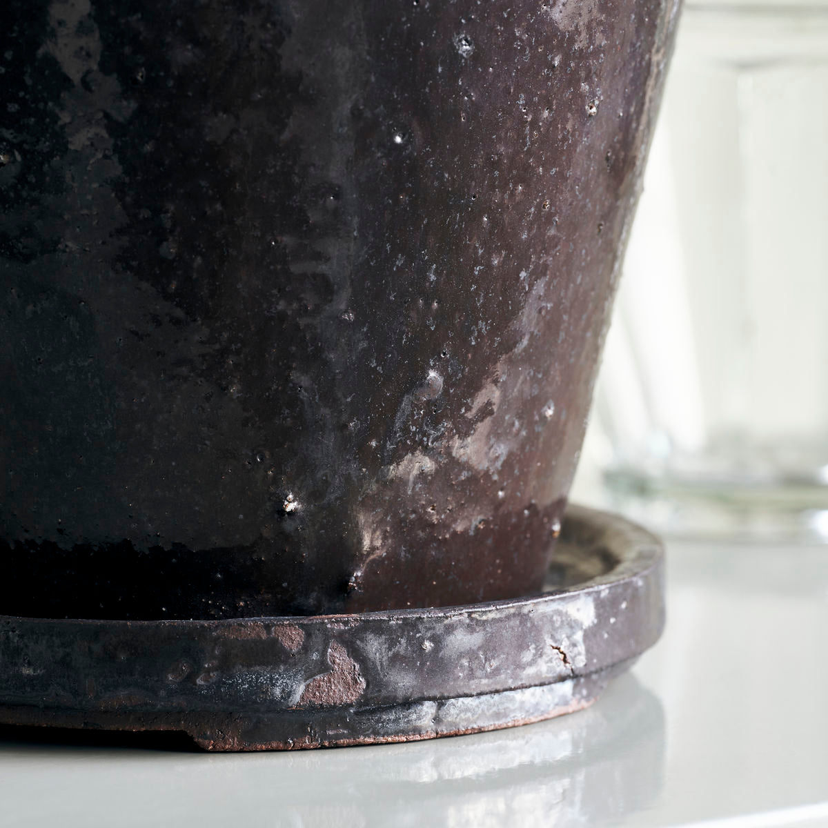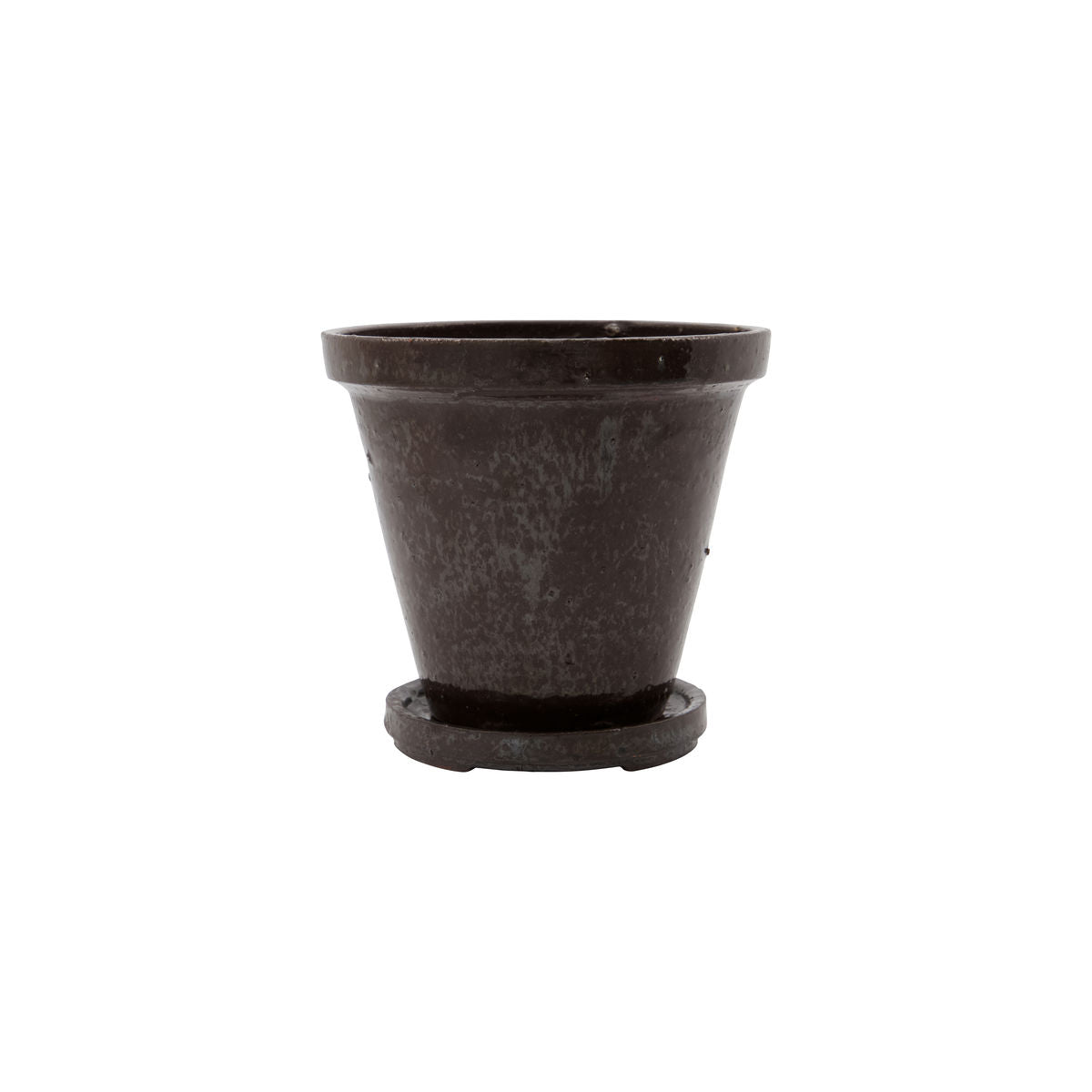 The rustic metallic brown planters come in 4 sizes. The stoneware is finished with a brown glaze with deliberate imperfections in the surface. A timeless design with a colour that suits any interior style. Place the planters together on a window and mix the various sizes for a personalised look. The Flower planters come with drain holes and saucers.