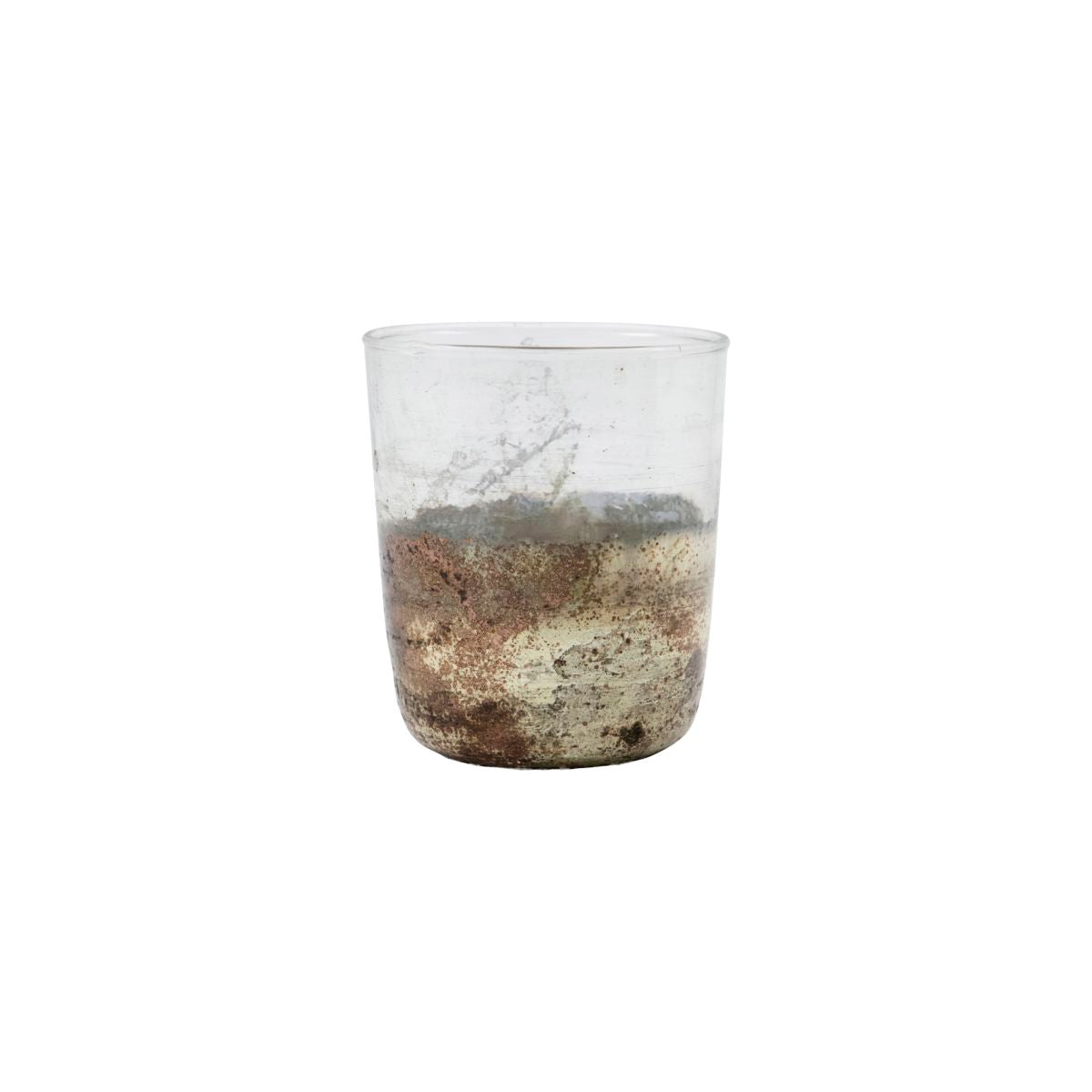 This metallic glass tealight holder instantly lights up the room with its interesting finish. The colour, finish and size may vary on this item but that is the charm of the handmade design. While the top is clear, the base has been given a metallic finish in golden shades that vary. Experiment with the repetitive effect and place more Gem tealight holders together or mix with vases, candle holders and bowls in similar shades for a personal display. Whether you want a soft and cosy light in the windowsill or on your console, the metallic effect will only be enhanced when you light the tealight