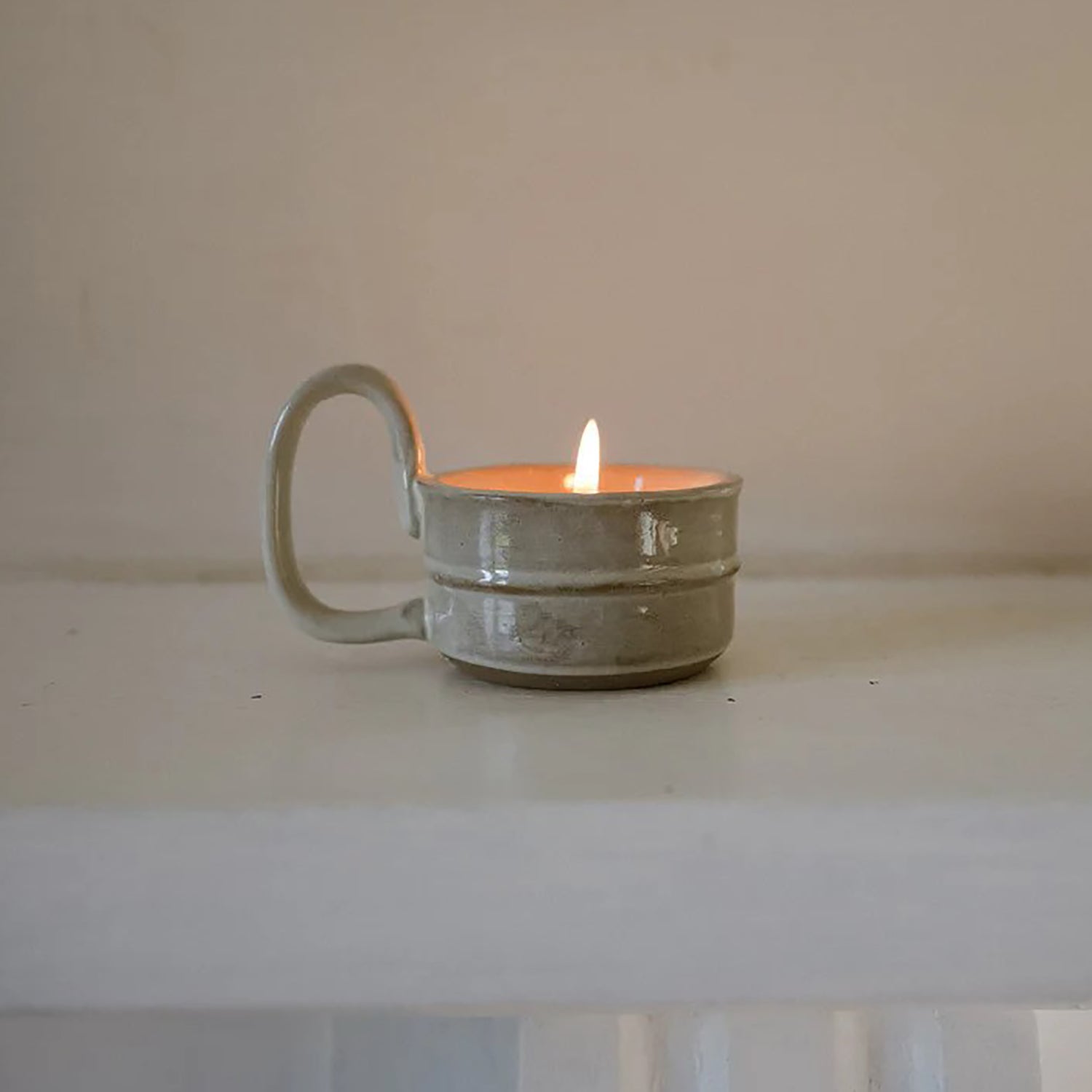 This candle cup that can hold a small pillar candle instead of just tea lights. By changing up the handle, this candle cup has a more artisan feel to it.