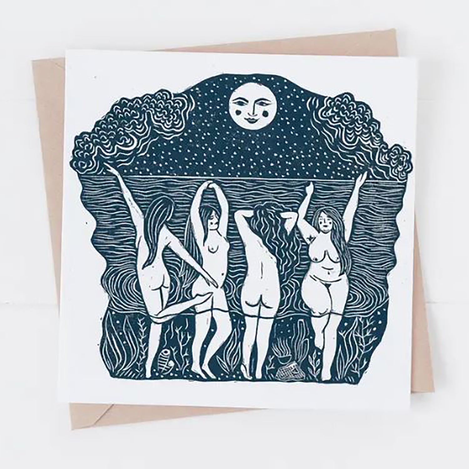 Blank inside with a brown Kraft envelope, made from recycled card stock. Digitally printed, taken from original linocut designs.