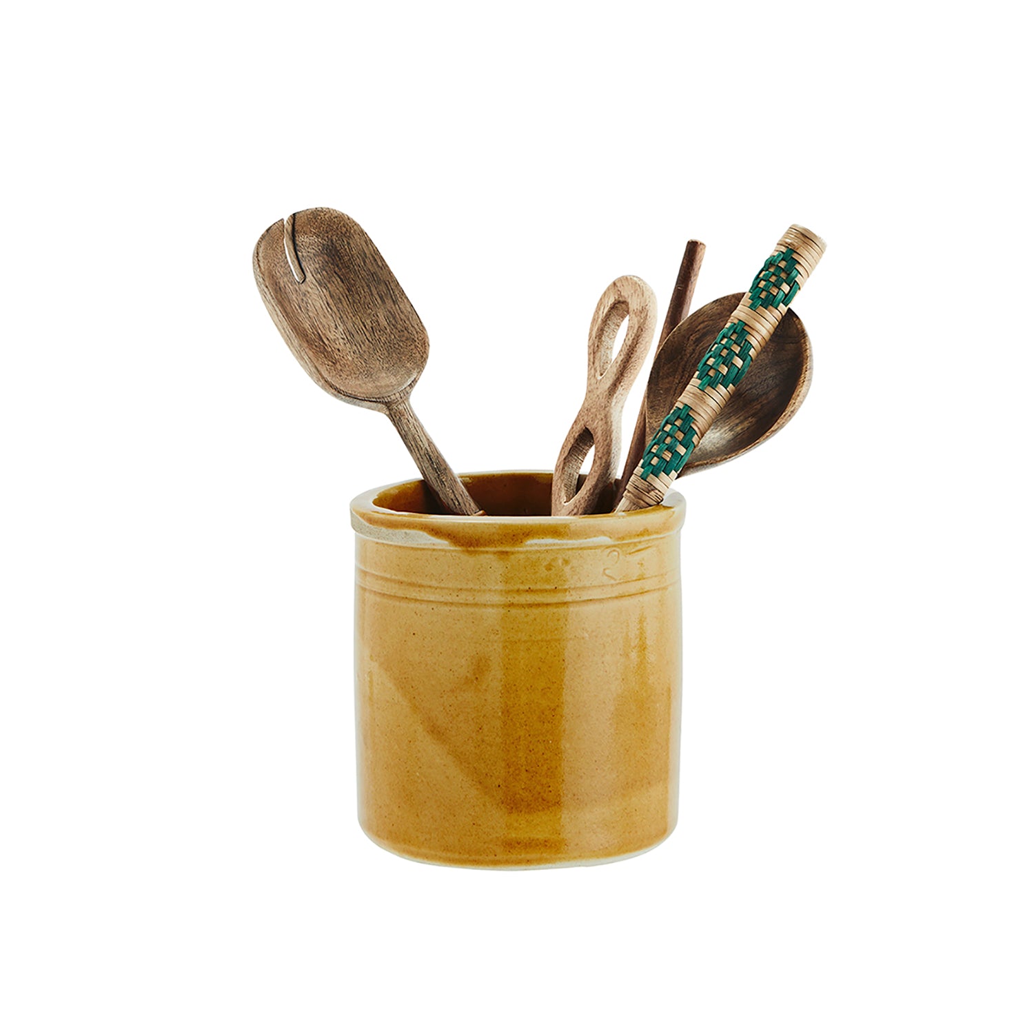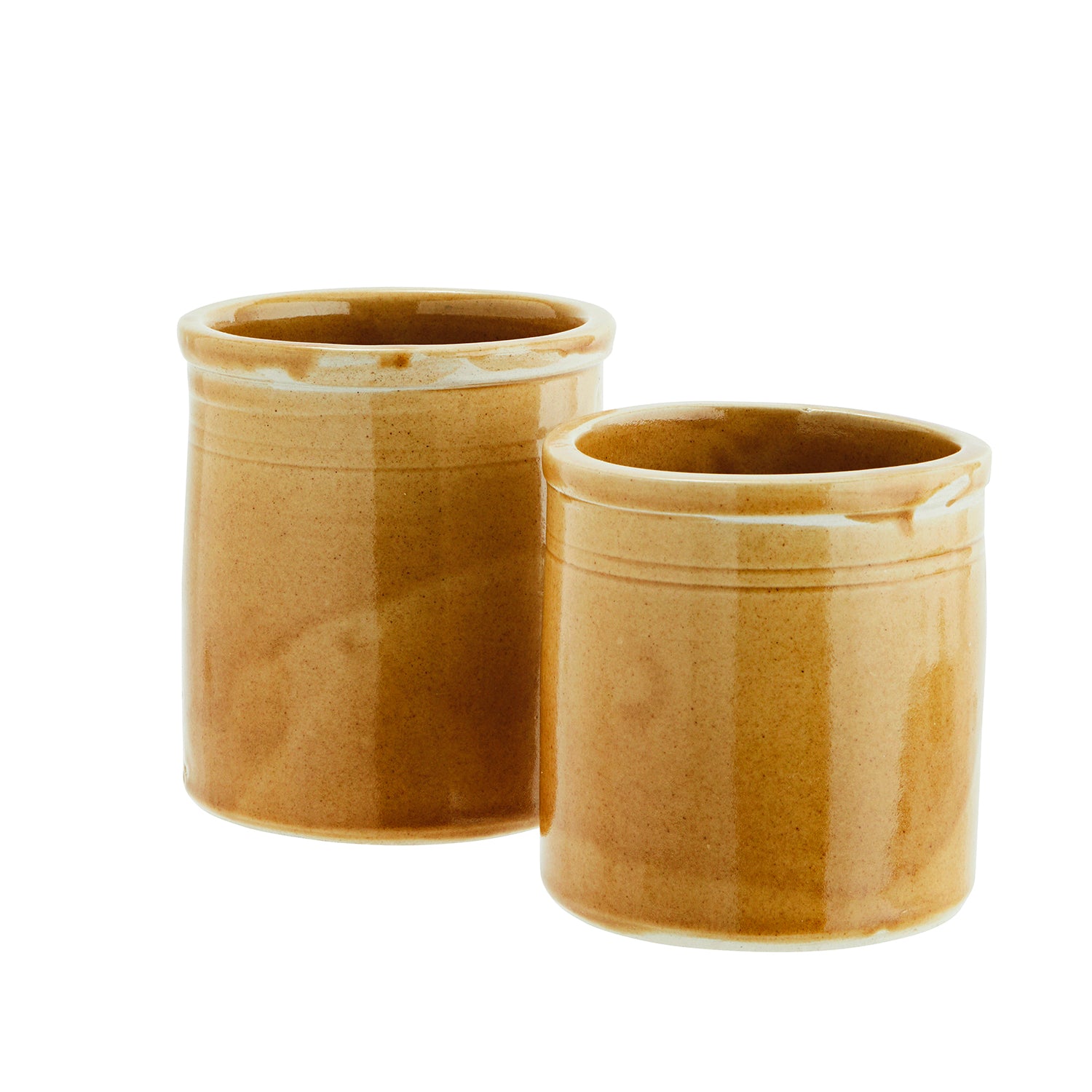 Handmade and glazed in a beautiful honey mustard, these storage jars are great in the kitchen or can be used as a planter.