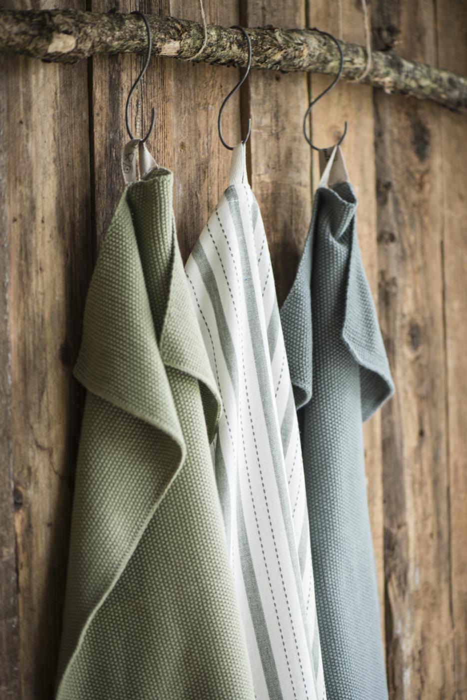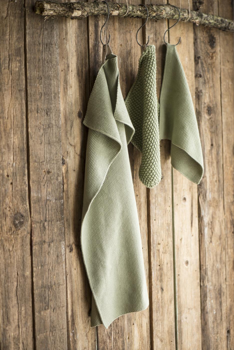 This knitted cotton towel from Ib Laursen is part of the brand's Mynte collection. This Olive Green colour towel features a lovely texture and soft feel. Useful in both the kitchen and the bathroom.
