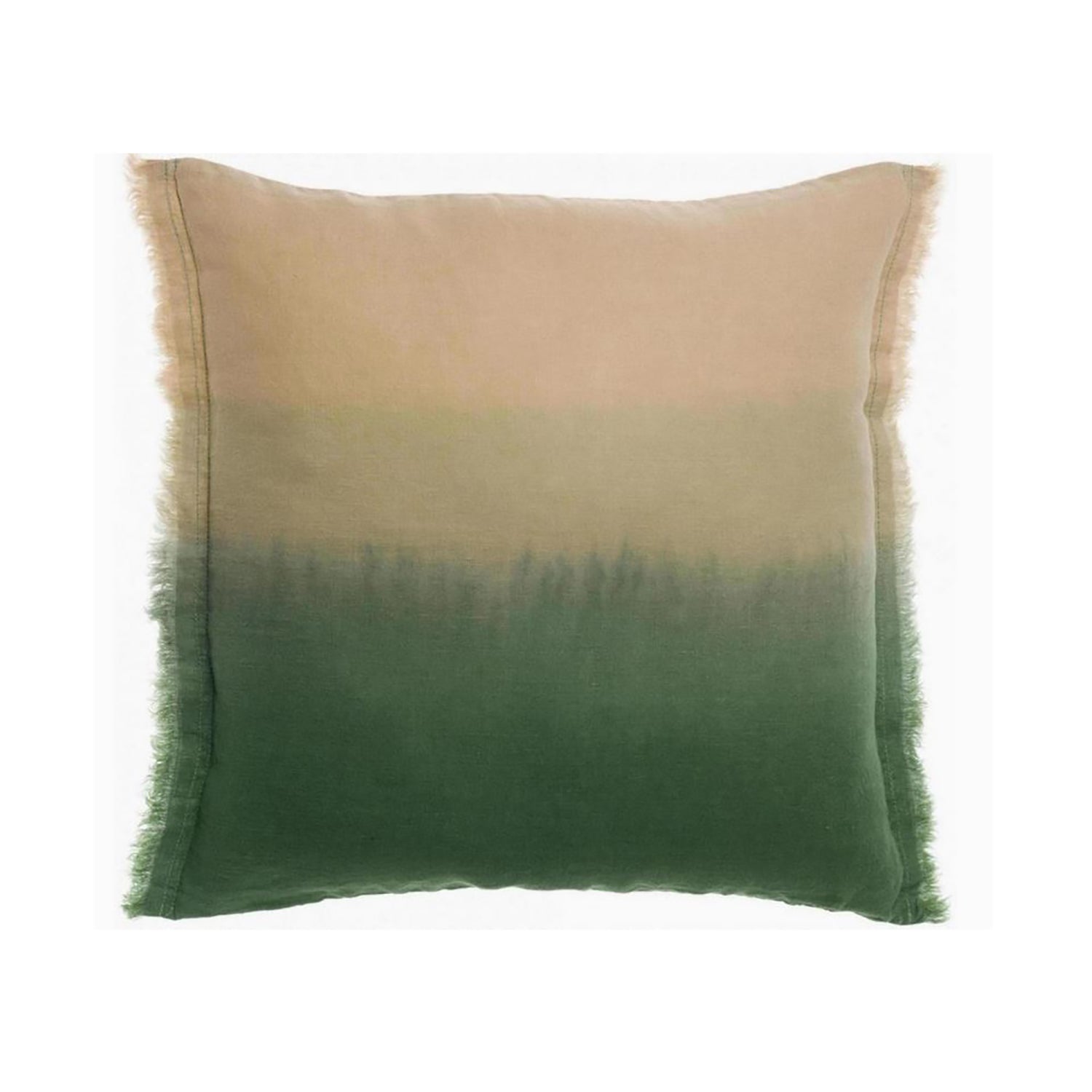 The cushion has been dyed with a beautiful forest green colour, which fades into the natural tone of the linen.