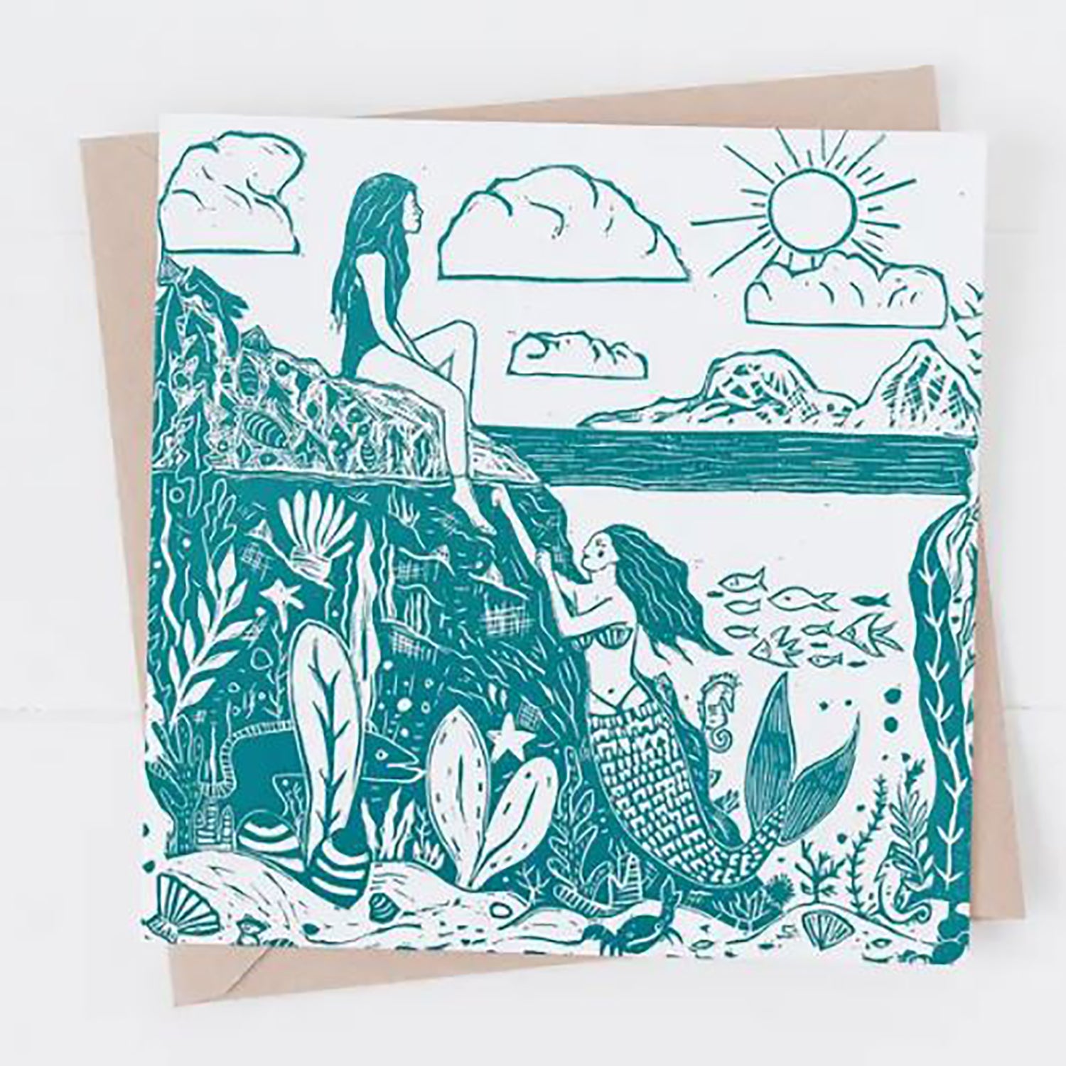 Blank inside with a brown Kraft envelope, made from recycled card stock. Digitally printed, taken from original linocut designs.