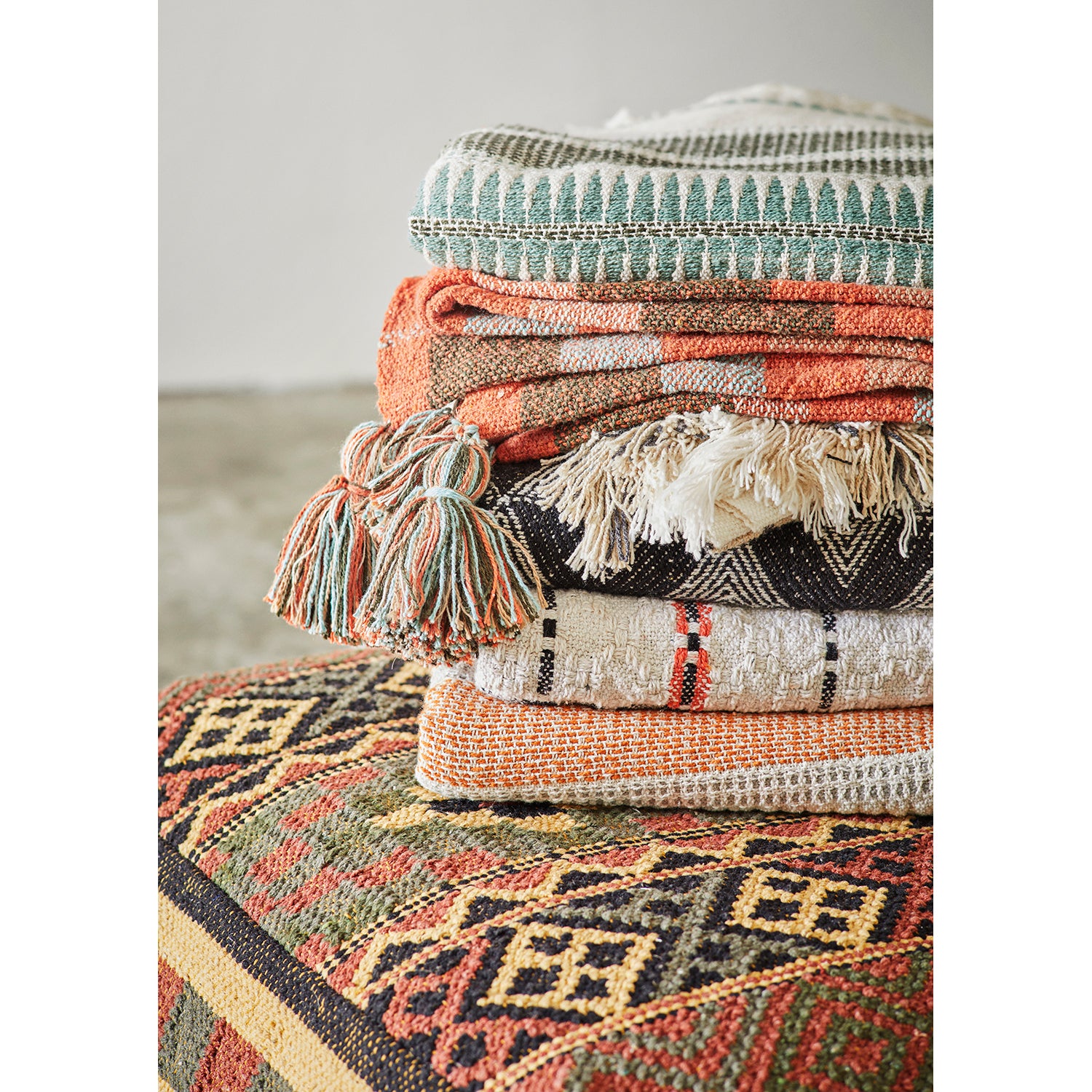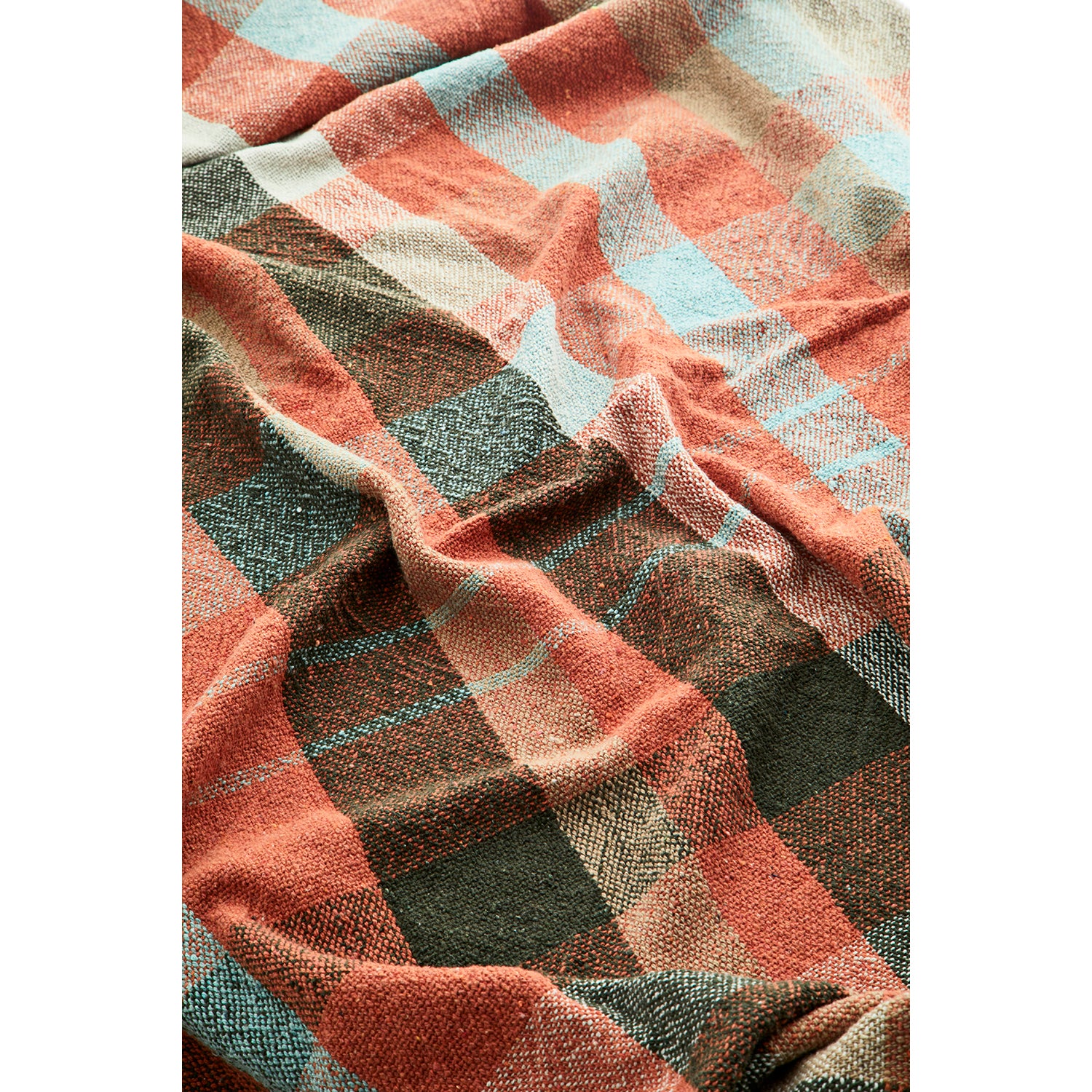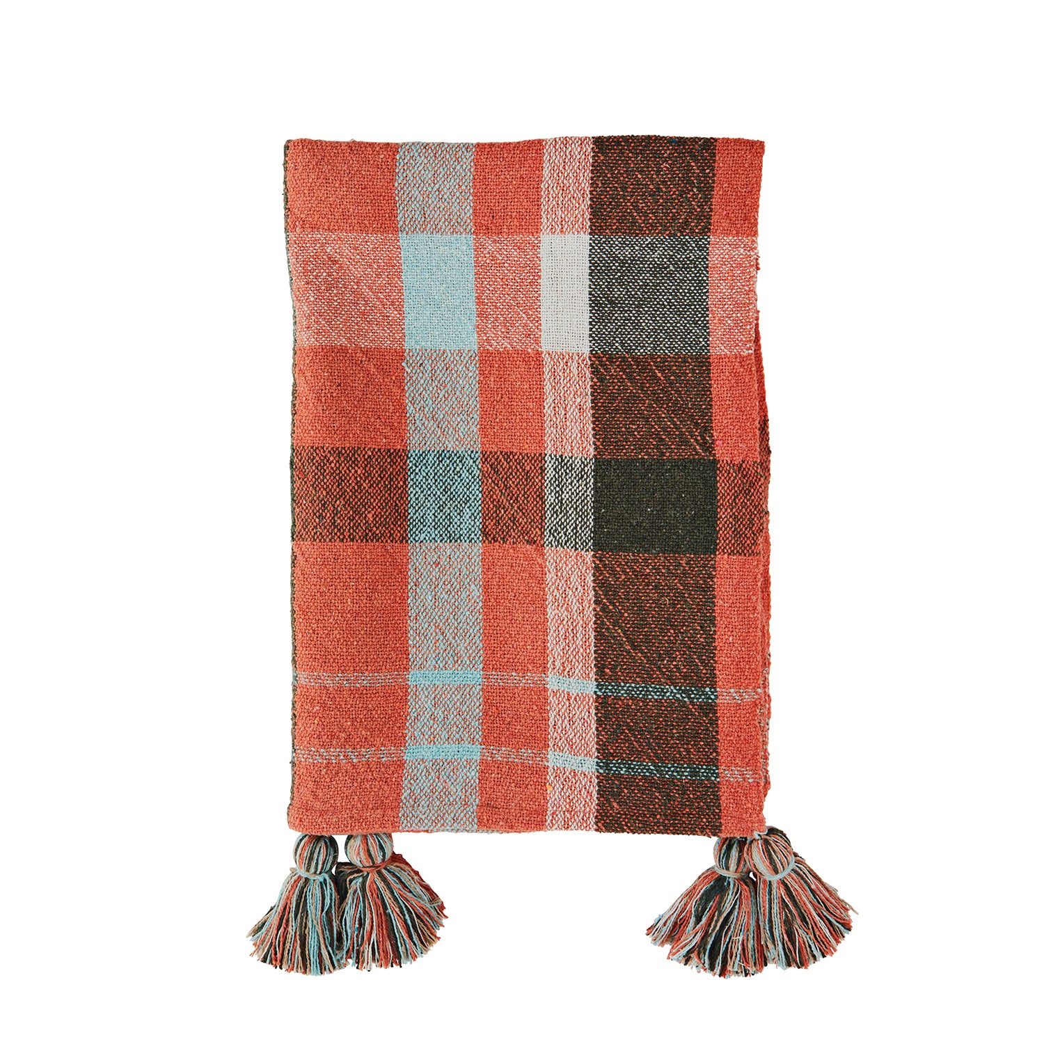 Orange & Grey Checked Recycled Cotton Throw with Tassels