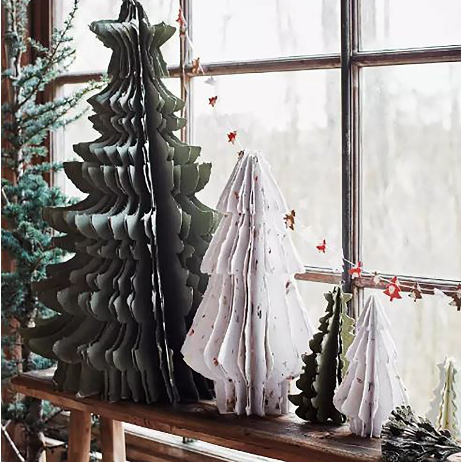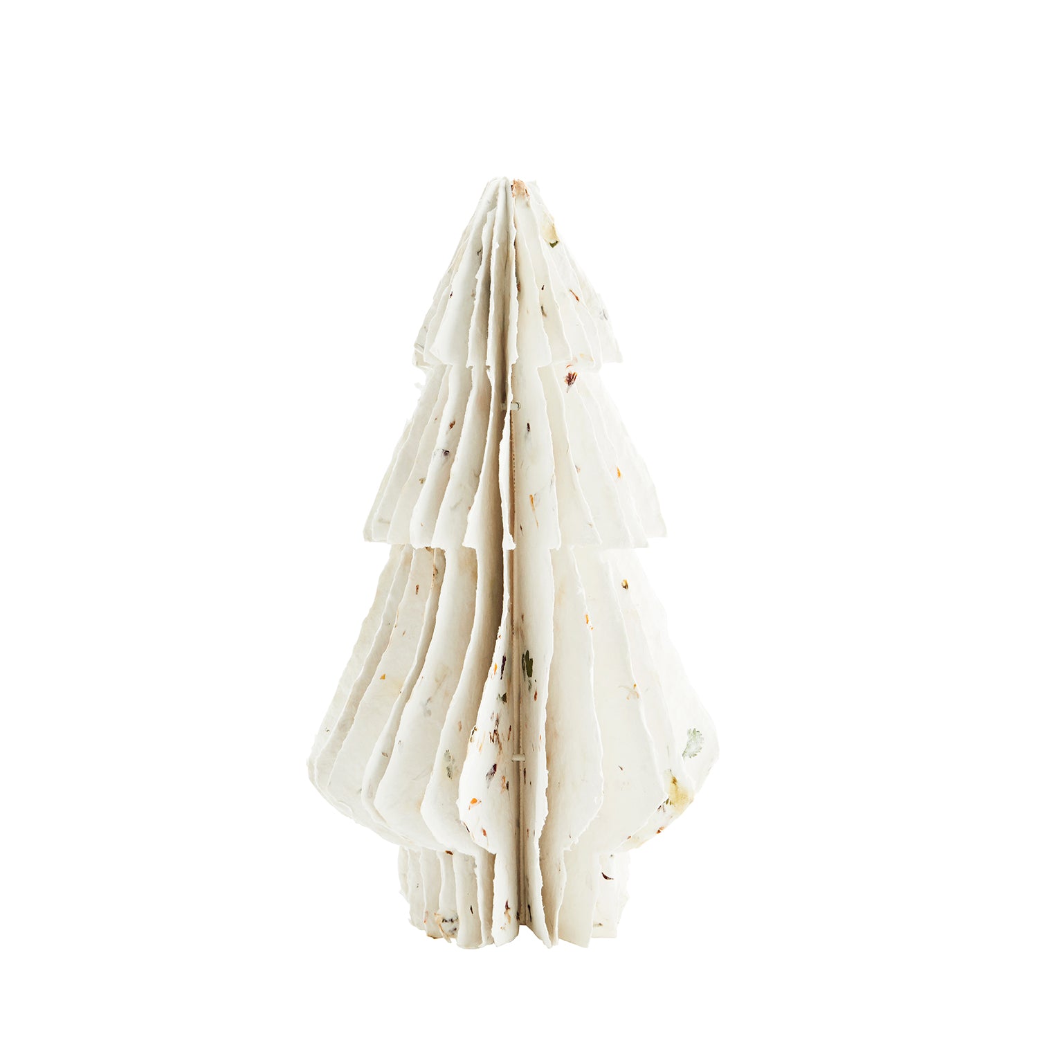 This beautiful Paper Christmas tree is made from 100% recycled Paper Pulp, and includes pressed flower petals. Handcrafted, this stunning decoration measures 47 cm high. The tree has lovely raw edges and comes with a star shape at the top of the tree. This is a decoration that will be a favourite year after year.