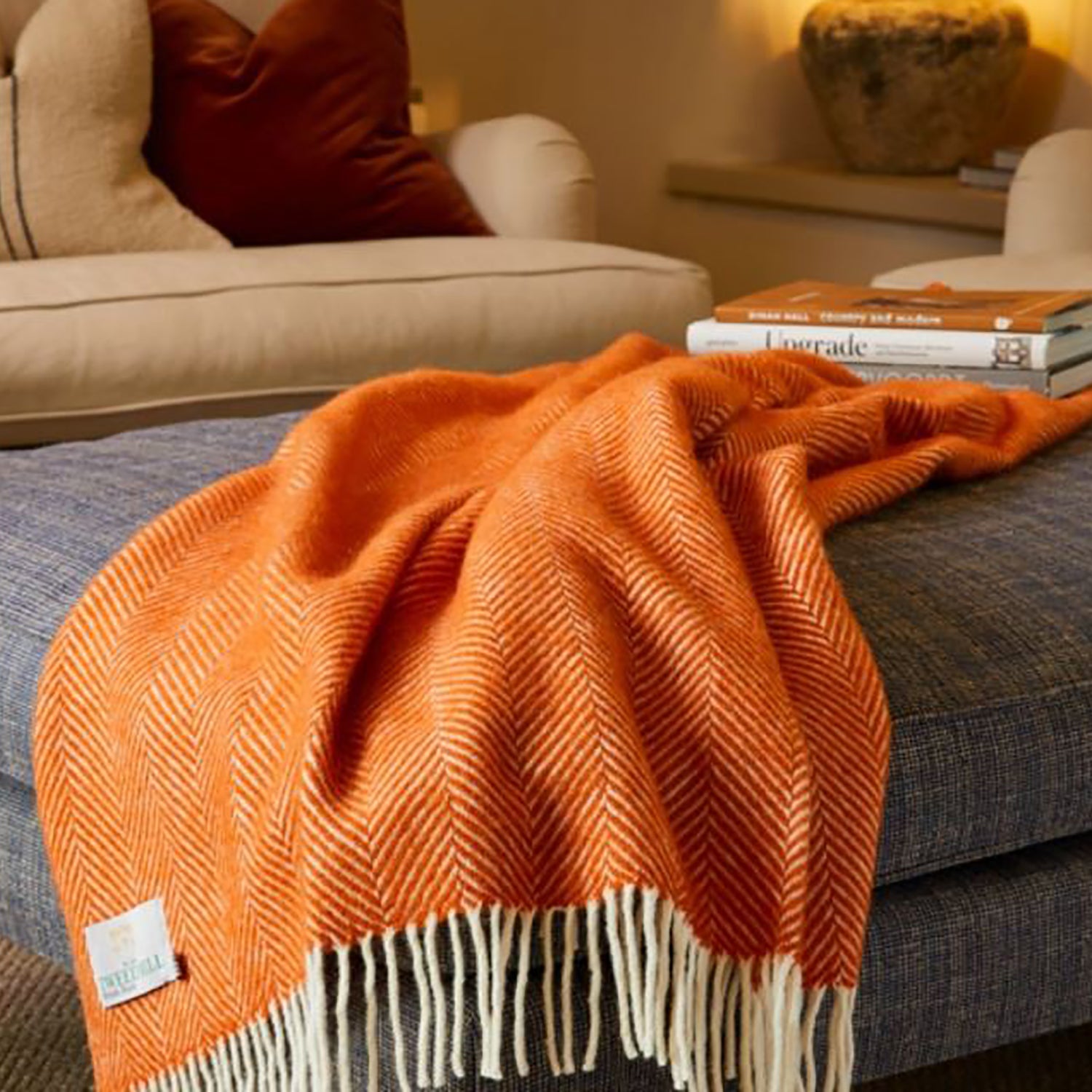 Pure New 100% Wool Fishbone Cinnamon Blanket, 150 x 183cm