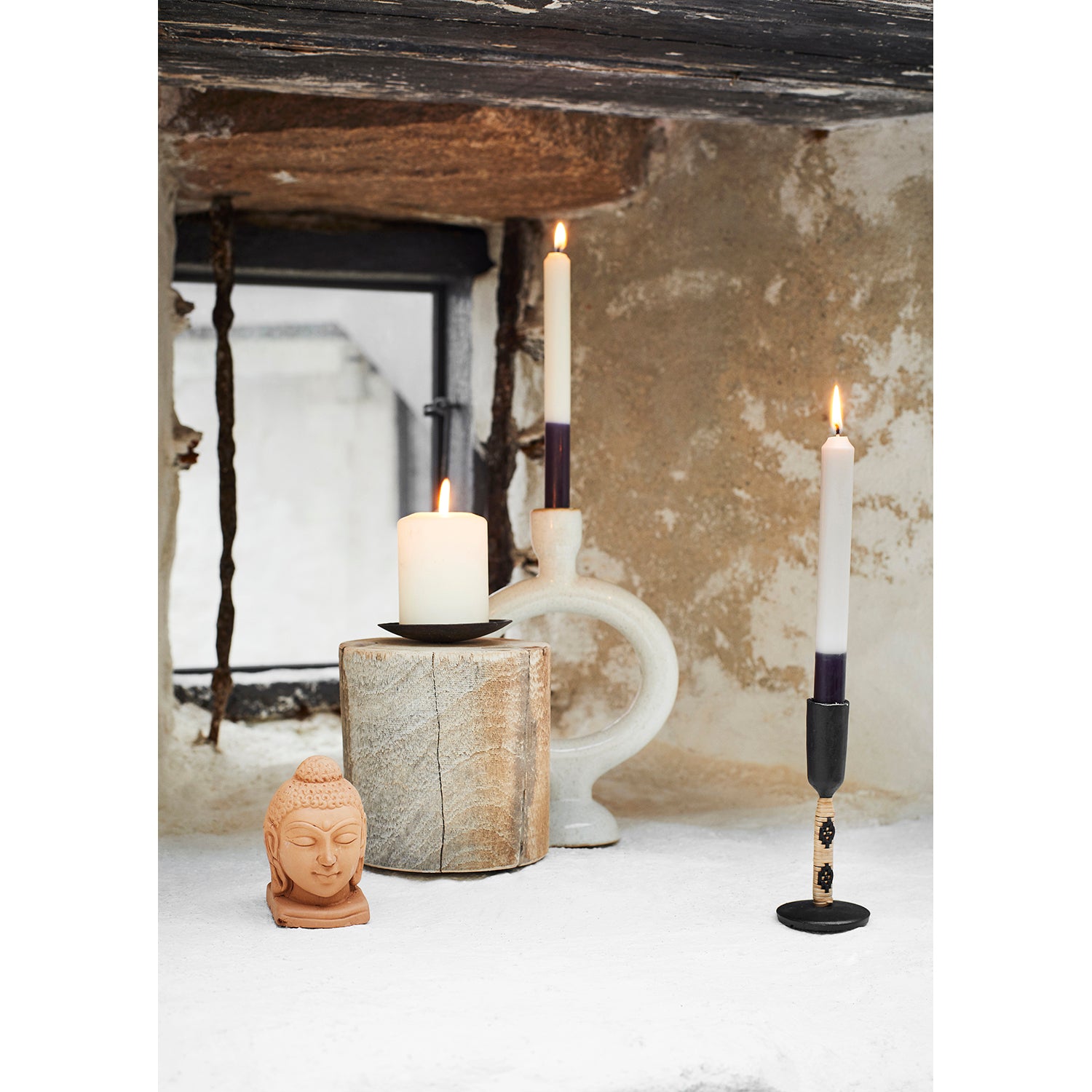 Available in 3 different shapes, these stands are all unique and come with cracks and imperfections - which is part of the charm. The stands have an iron cup which you can use to hold a pillar candle or tea light.