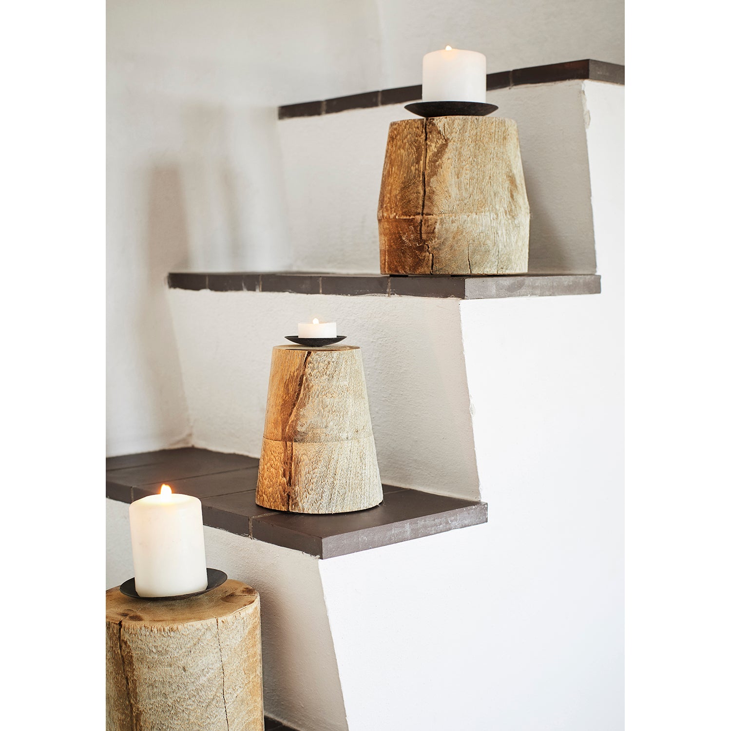 Reclaimed Wood & Iron Candle Stand, Assorted Shapes