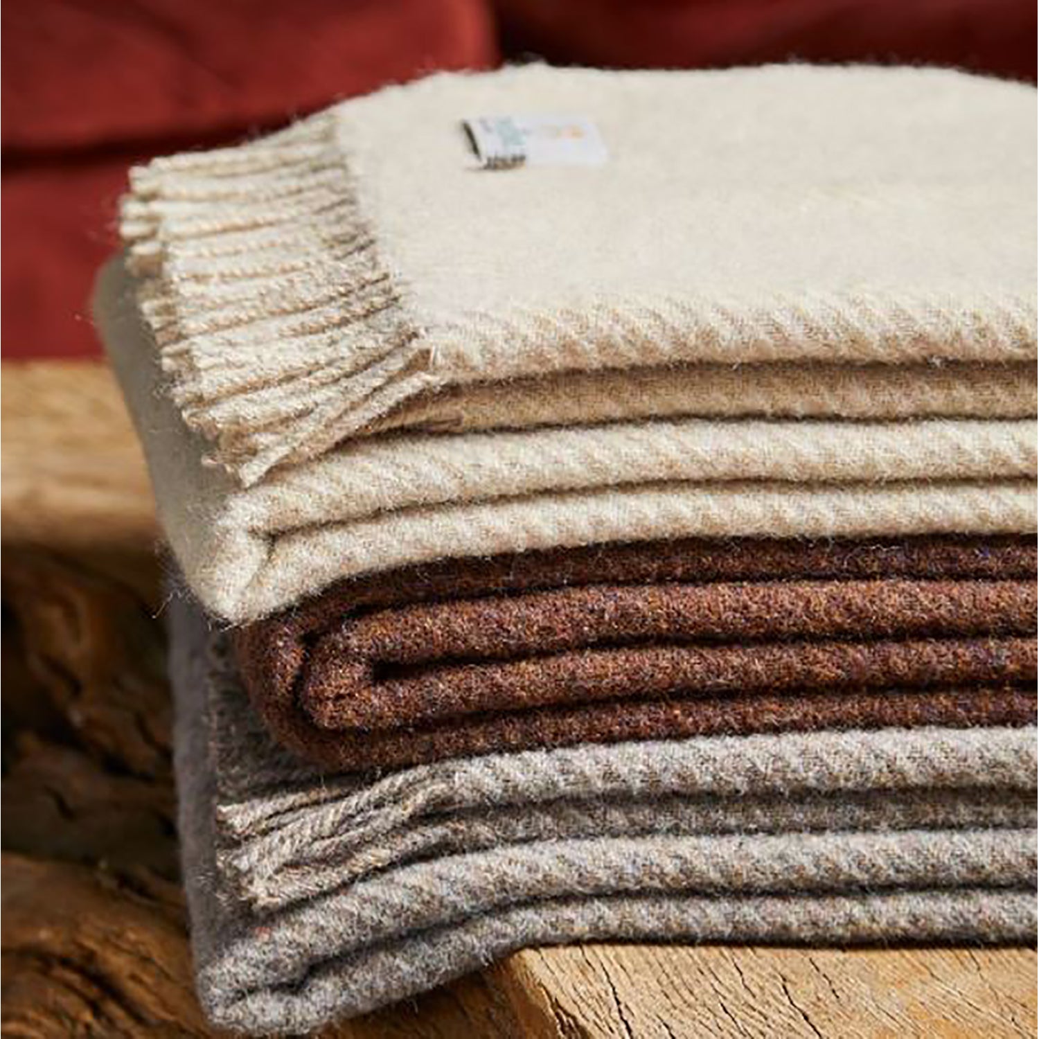 Beautifully cozy 100% all wool blanket, made from 50% wool, 50% recycled wool.