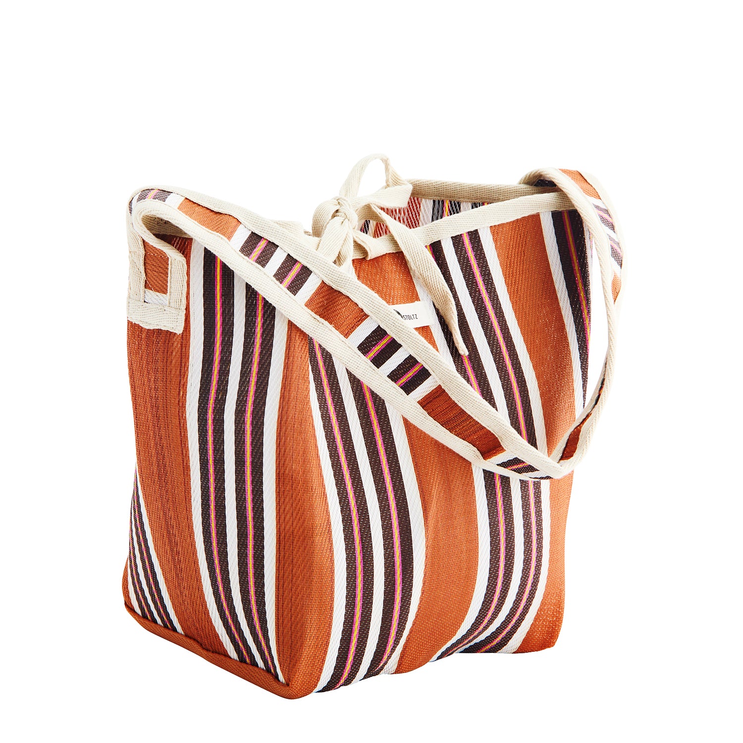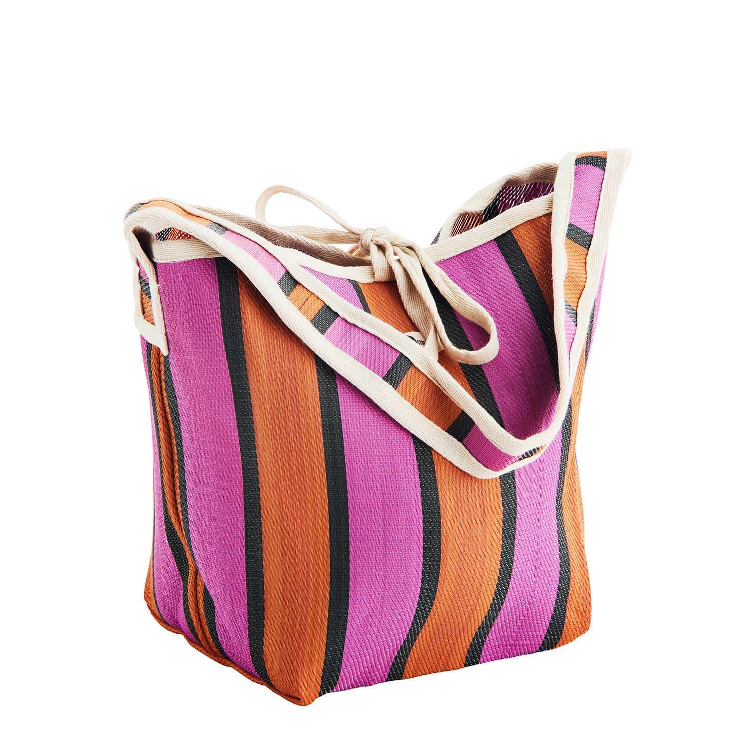 Great for shopping or taking a picnic out, these lovely striped bags come with a strap and cotton tie. Coulourful tote bag for shopping or outings.