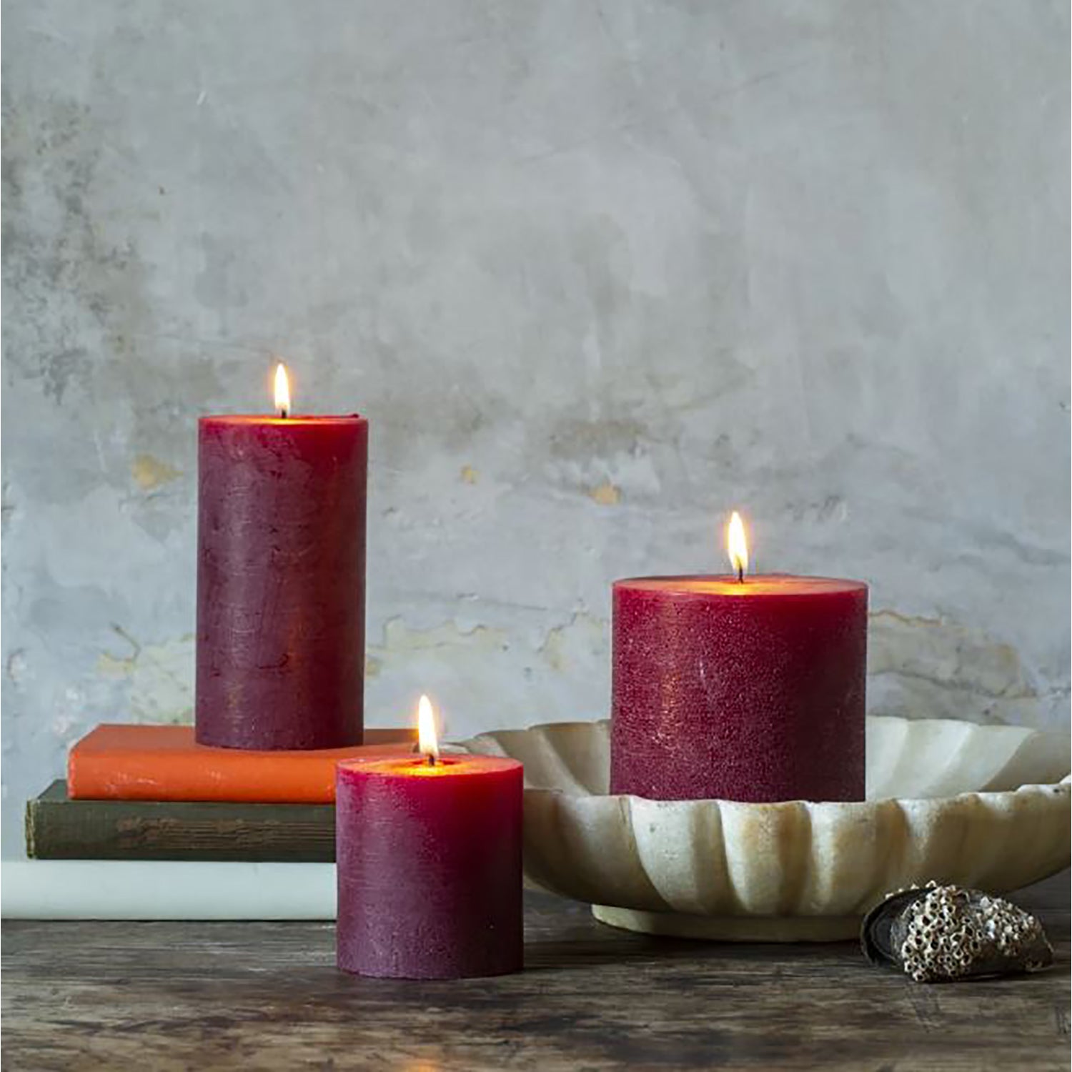 A beautiful warm plum colour, these pillar candles are a great feature around the home as well as offering a lovely calm light source.