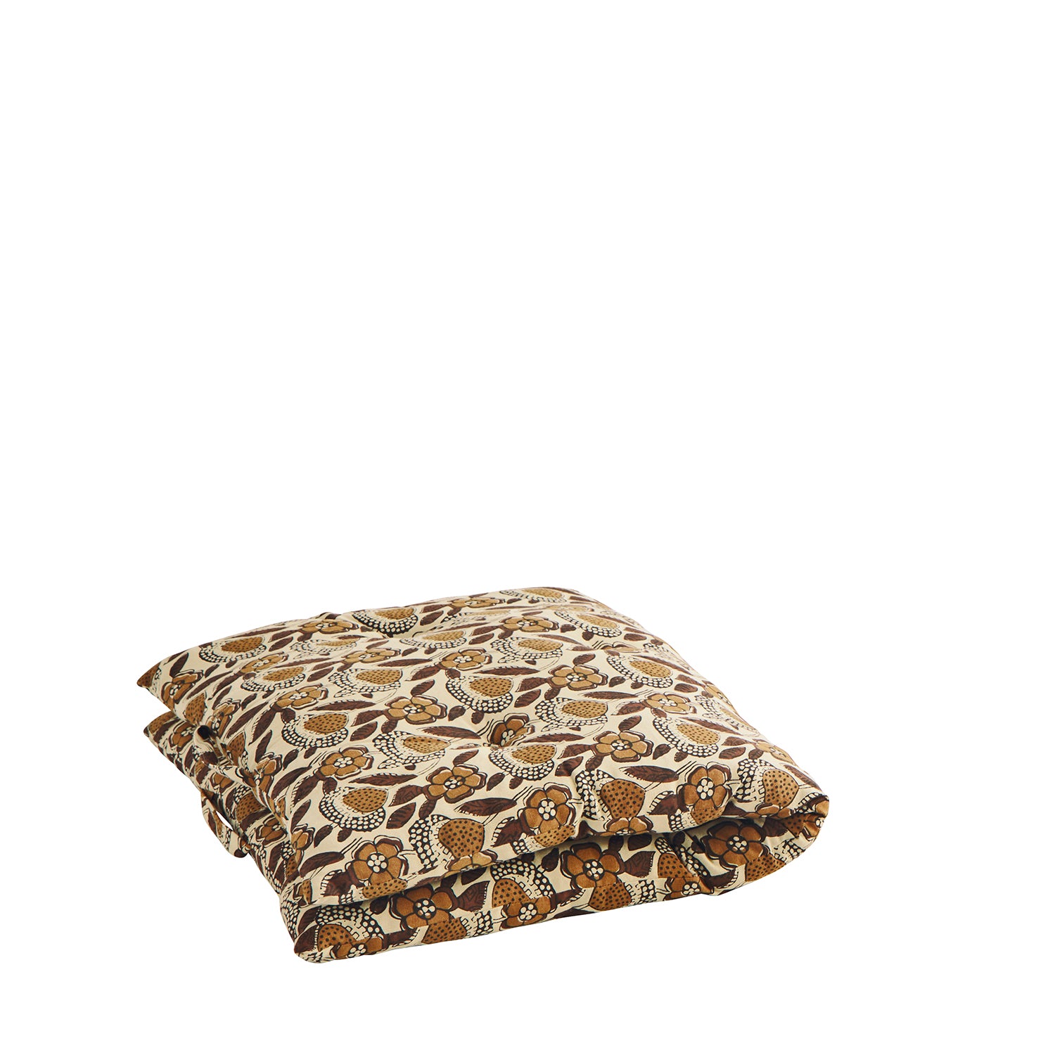 Sand, Brown, & Mustard Floral Block Print Cotton Mattress, 60 x 100 cm
