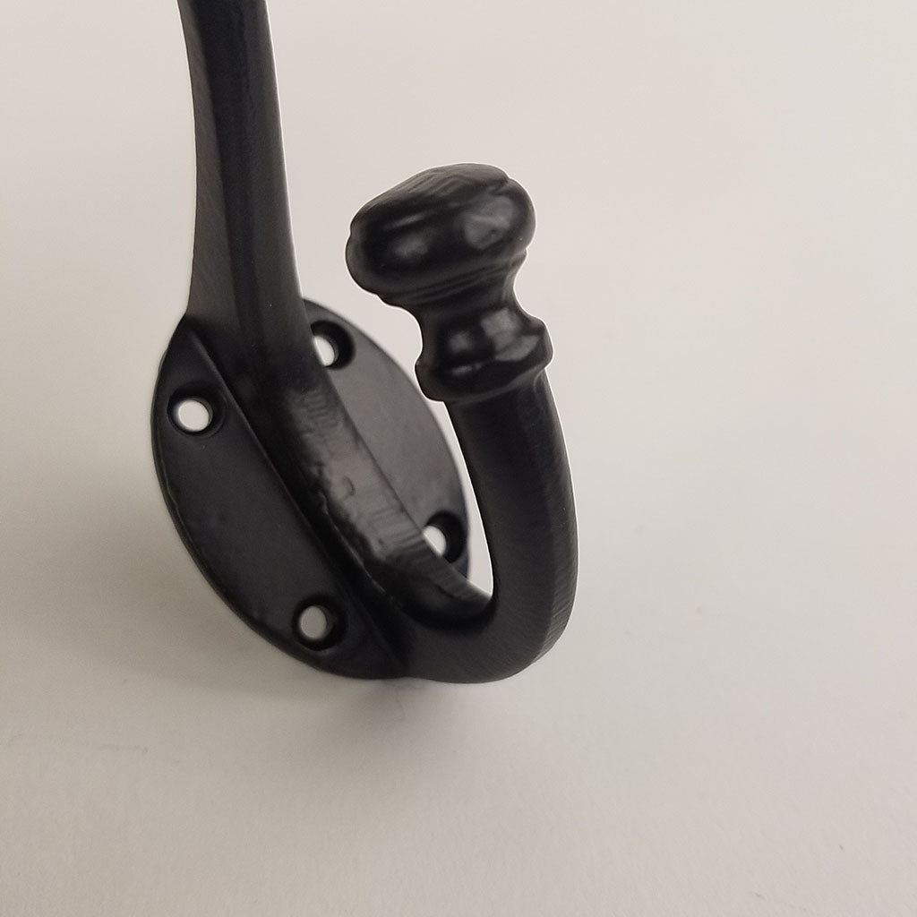 Black Hat & Coat Hook with Old English Beehive Top 15cm