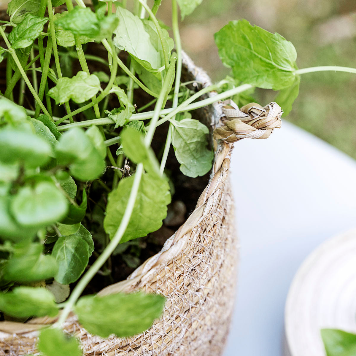Made from woven seagrass, these baskets come in their natural shade of light brown.