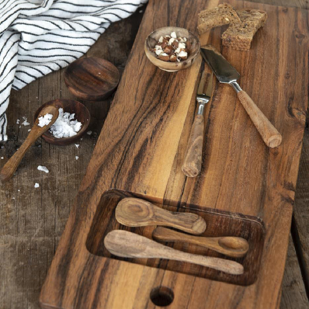 These Mini bowls from Ib Laursen are crafted from Acacia wood. They are perfect for Tapas style meals, for dipping and sharing from. Beautifully made and a lovely addition to your table. Also great in the kitchen as spice And salt containers.