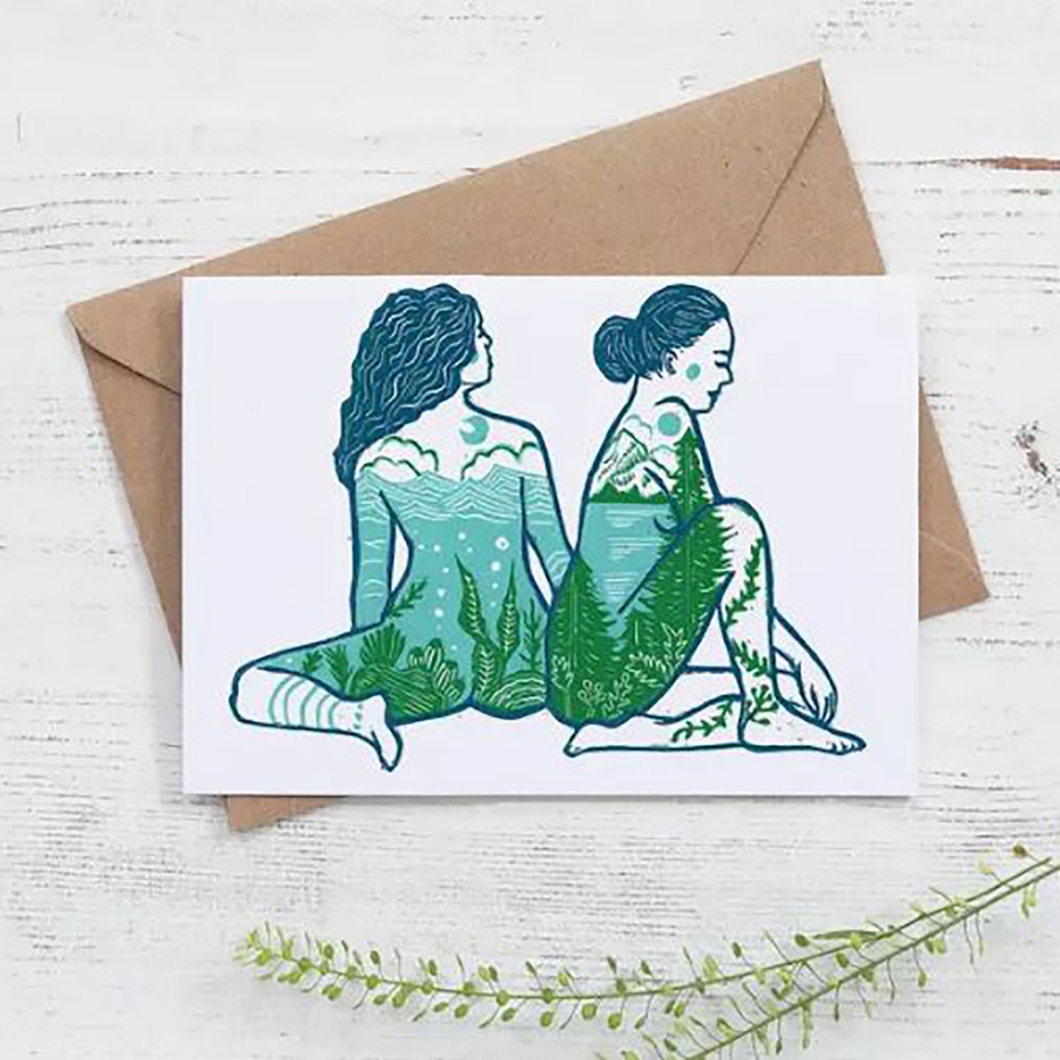 Blank inside with a brown Kraft envelope, made from recycled card stock. Digitally printed, taken from original linocut designs.