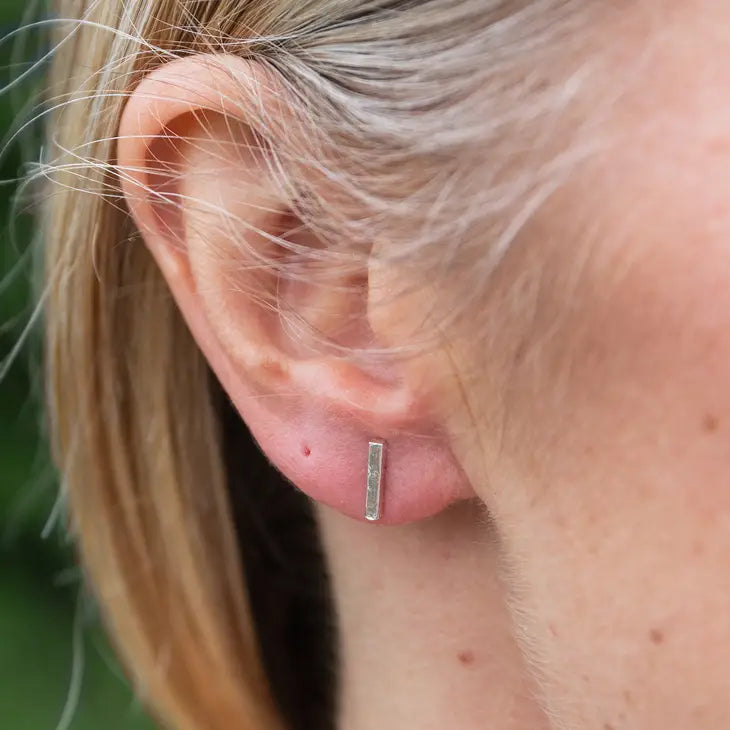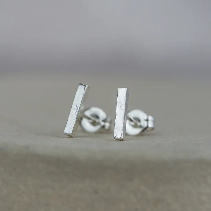 Handmade sterling silver mini stick studs are hand cut and are perfect for everyday wear. Each sterling silver mini stick stud measures approximately 7-8mm.