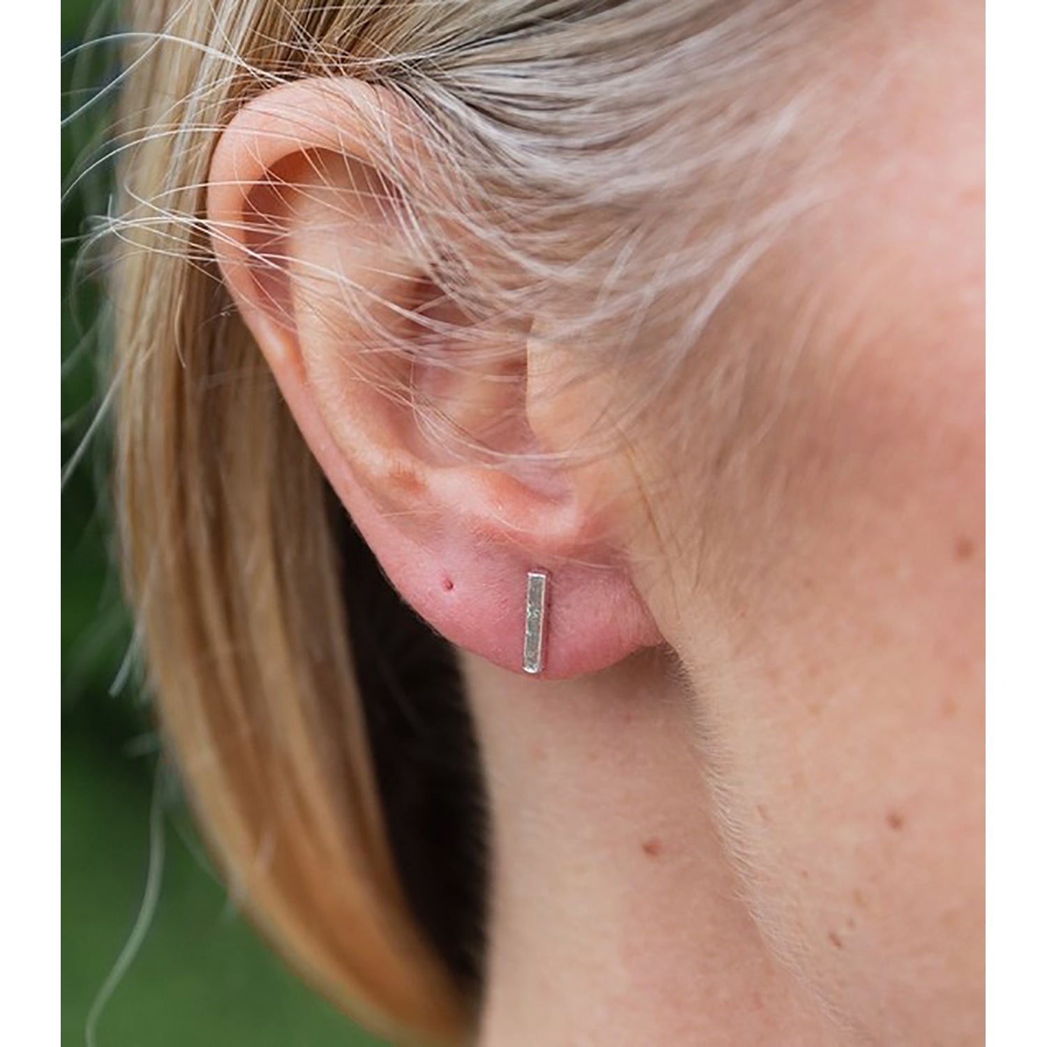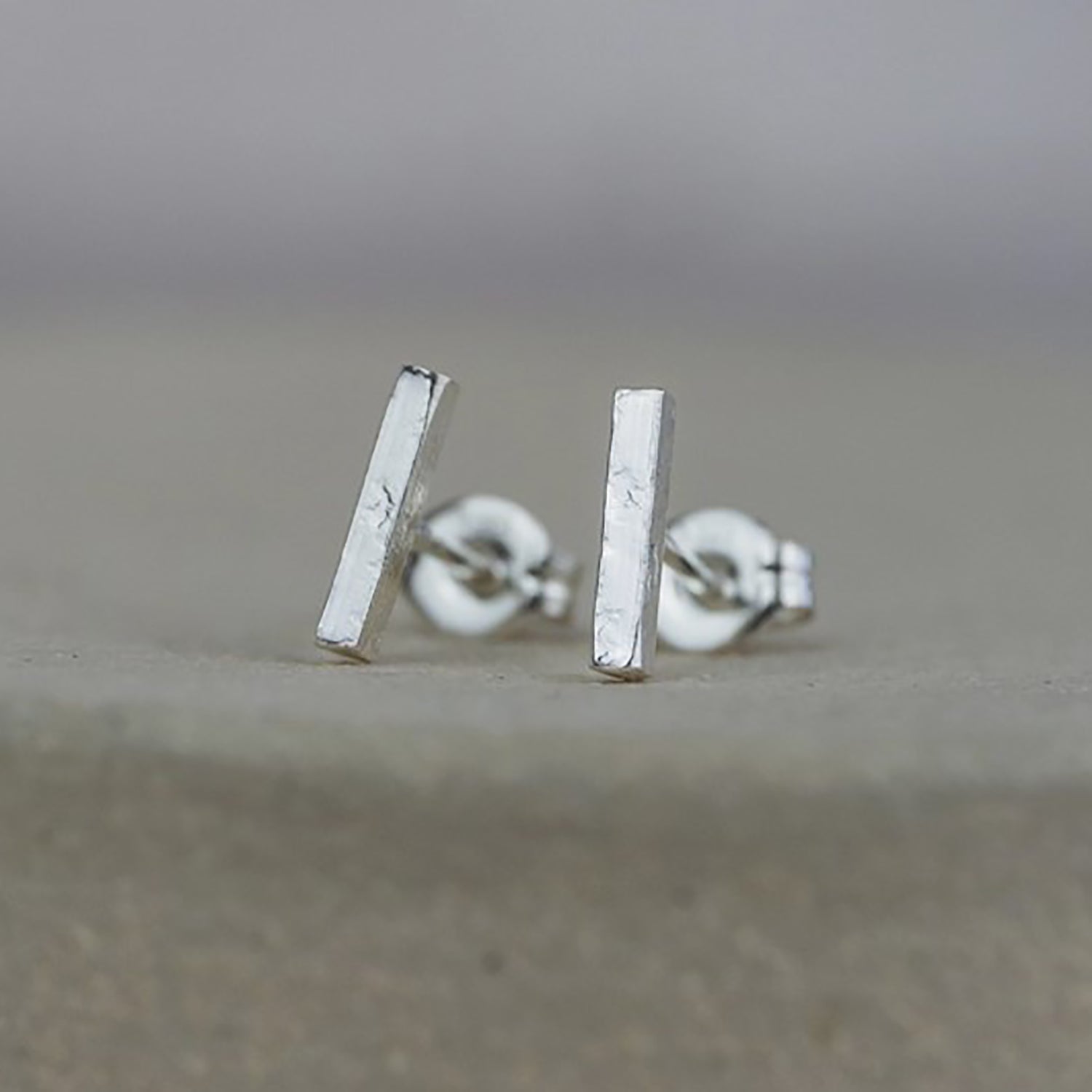 Handmade sterling silver mini stick studs are hand cut and are perfect for everyday wear.