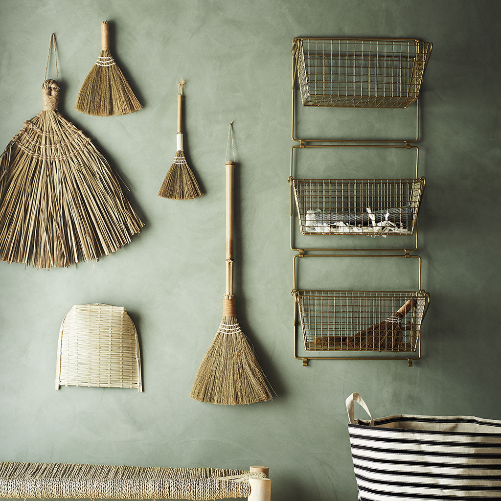 From Madam stoltz, this beautifully made straw broom comes with a bamboo handle. The broom is handmade, and makes a lovely wall feature, as well as being a functional brush for the home. Create a bohemian look in your home with this natural broom