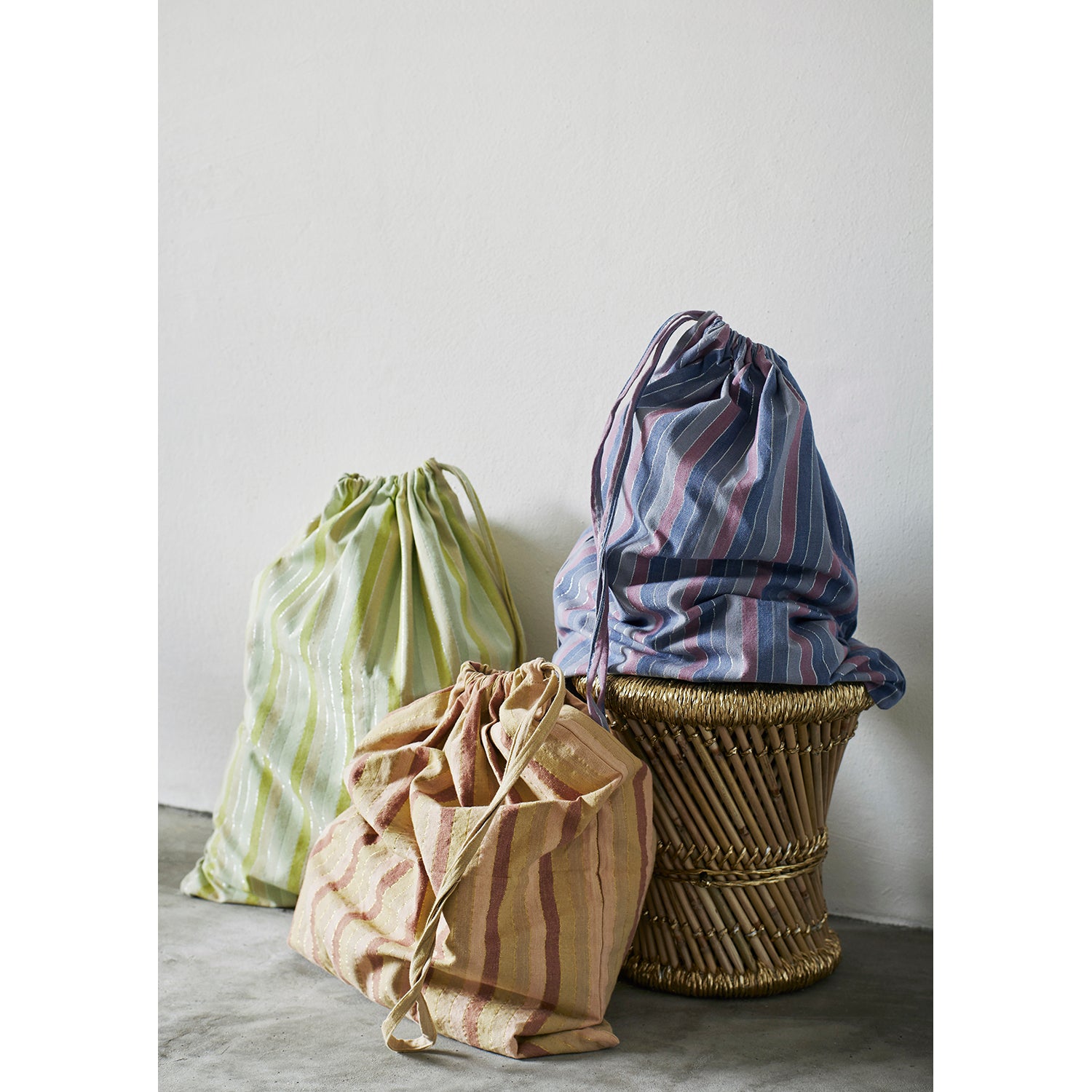 Striped Cotton Drawstring Laundry Bag