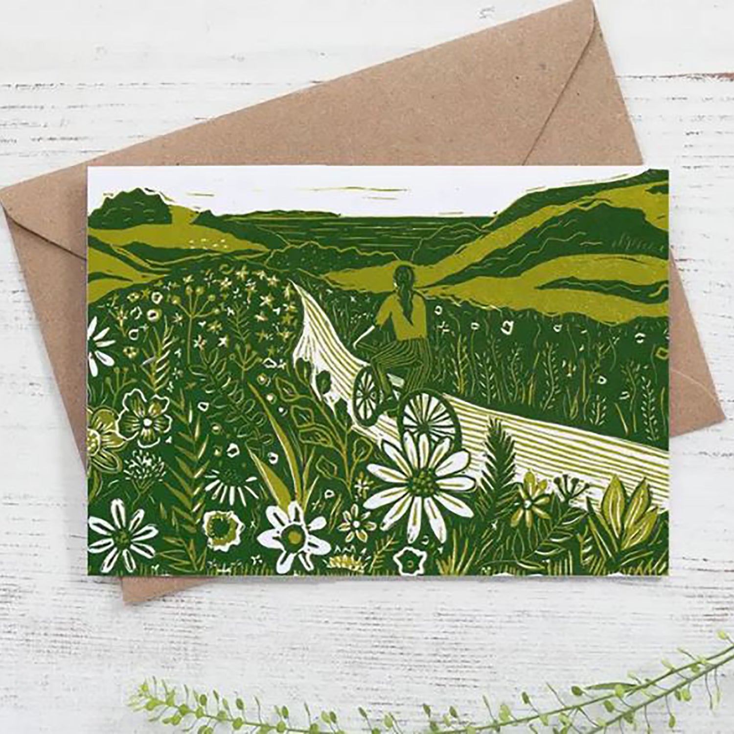 Blank inside with a brown Kraft envelope, made from recycled card stock. Digitally printed, taken from original linocut designs.