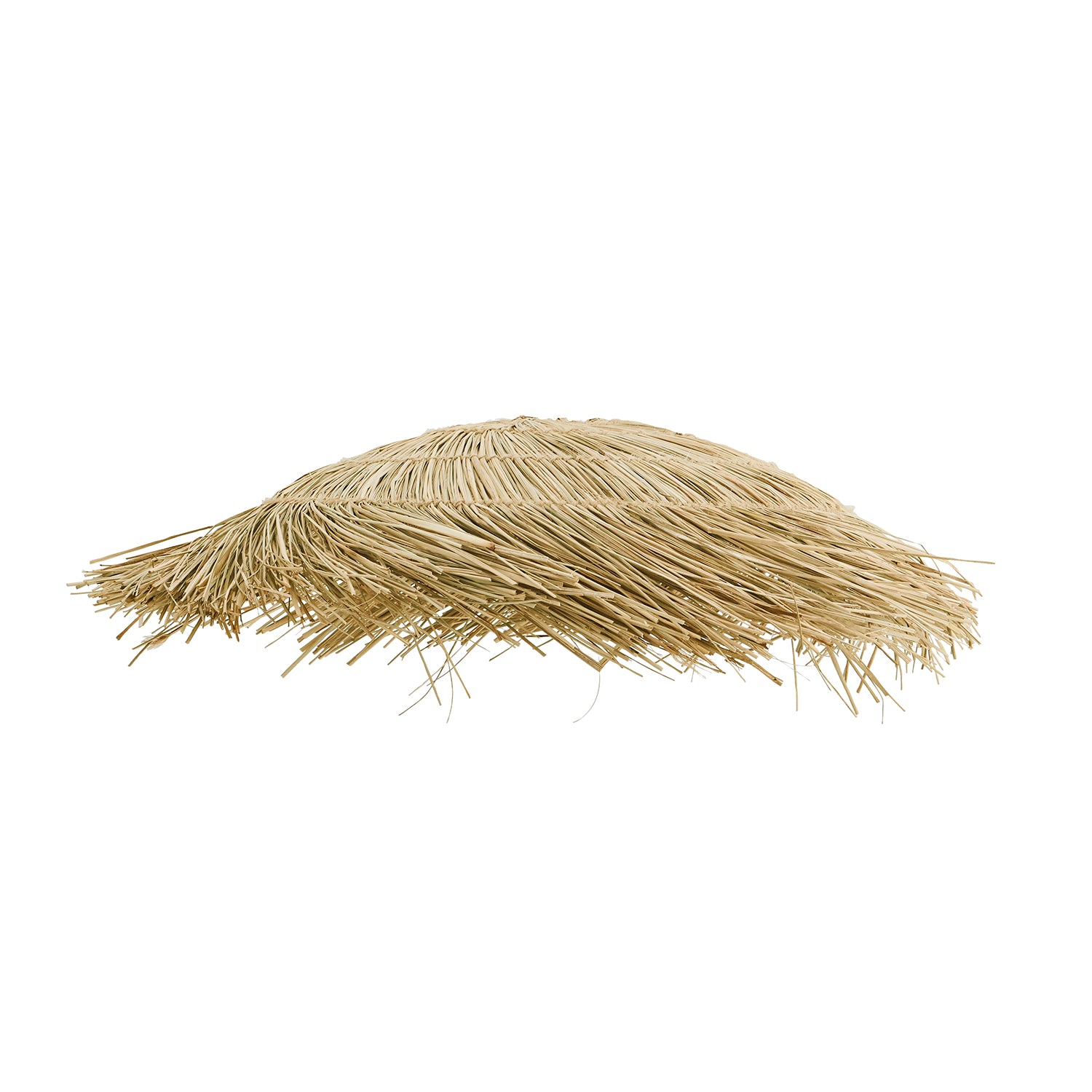A large woven seagrass lampshade with a dynamic frayed edge.