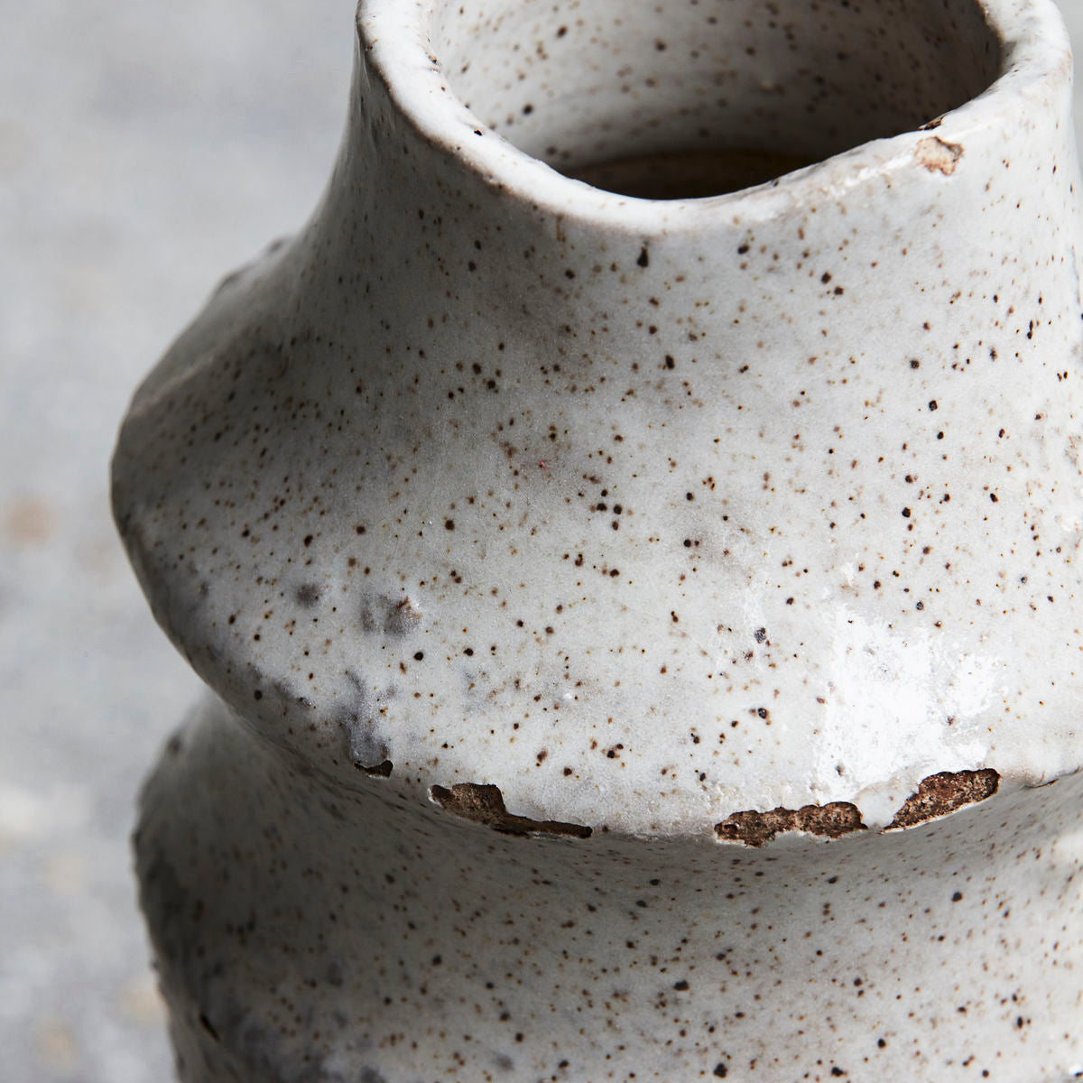 This vase by House Doctor is called 'Nature' it has an intriguing texture and form with holes and blisters in the white glaze. The surface has a rugged texture which goes well with this roughly thrown ceramic pot. Create an attention grabbing display by combining with vases in other neutral colours and different shapes and sizes. Looks great placed alongside candle holders and planters for an airy and cosy atmosphere.